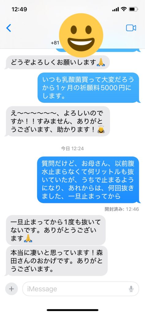 腹水が止まらなかった方から先程いただいた、お客様感想メール